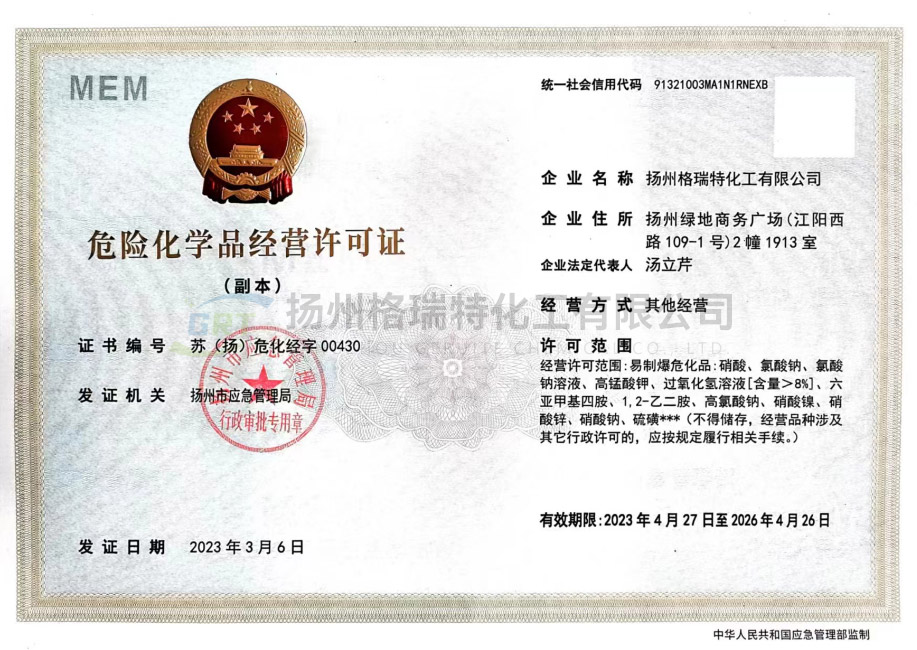 揚州格瑞特化工有限公司生產工廠坐落于江蘇省海安縣胡集工業園區和海安精細化工工業園??偣境闪⒂?999年,是集科、工、貿為一體的現代化生產型企業。專業致力于水處理劑、紡織印染助劑、化纖油劑等產品的科研、開發、生產和銷售??偣菊嫉孛娣e40000m,建有現代化標準廠房,擁有先進的生產設備。年產各類水處理劑系列產品12000噸,紡織印染助劑5000噸,產品12個系列40多個品種。總公司注重技術投入,設立產品研發中心和環保運營中心,聘請了多位專家為公司技術顧問,并和多個重點院校建立了長期技術合作開發關系,是南通大學、江南大學、南京工業大學產學研基地。
